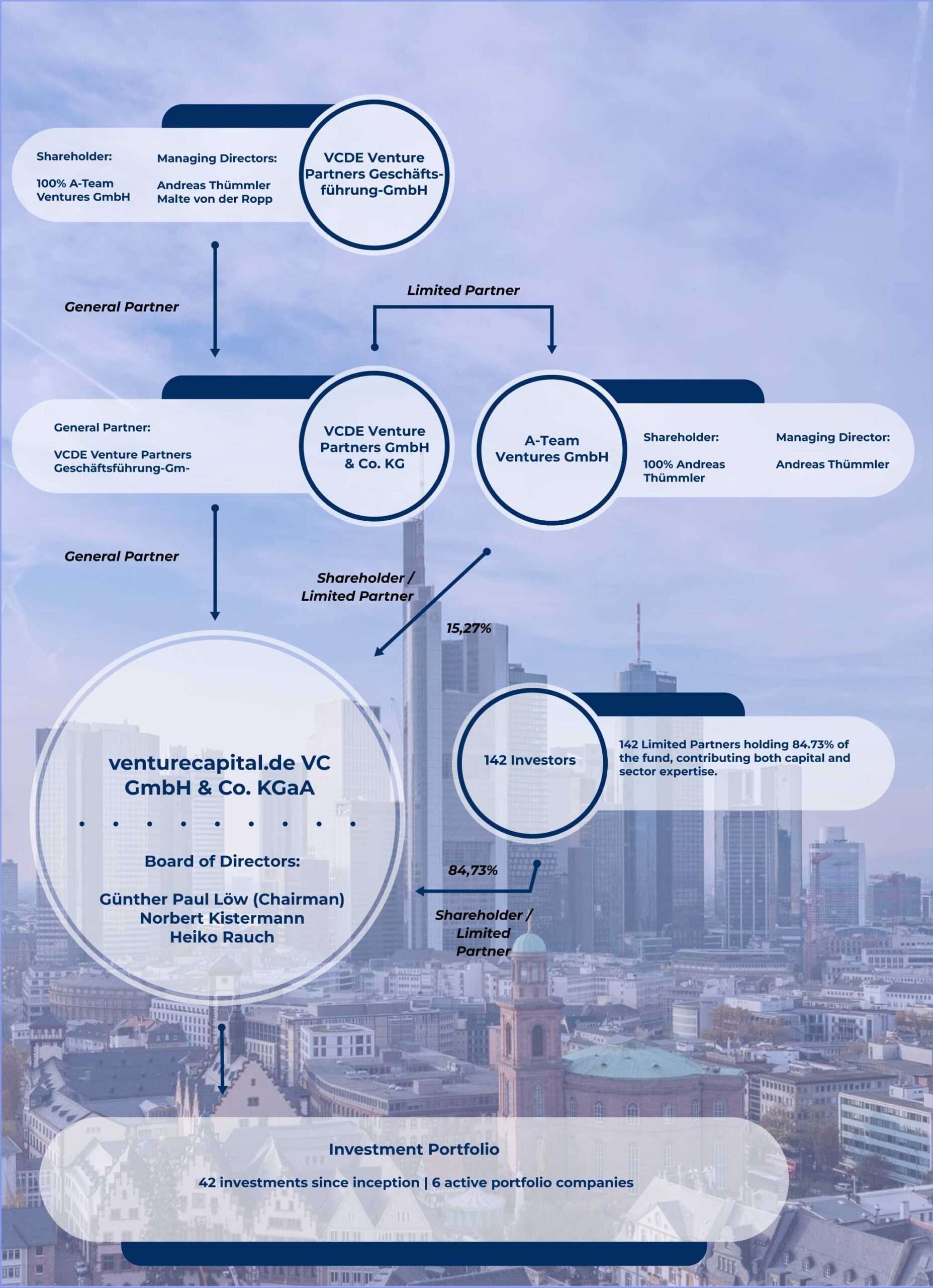 The supervisory board of the venturecapital.de fund brings together deep expertise from law, banking, and entrepreneurship. The board is chaired by Günther P. Löw, a distinguished lawyer, asset manager, and investment specialist who has held leading supervisory roles at several prominent companies, including Impera Total Return AG, and is managing director of GPL Verwaltungs- und Beteiligungs GmbH in Frankfurt. His career is marked by decades of experience in structuring and overseeing complex investment vehicles, making him a trusted figure in asset management and venture financing.